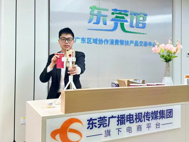 (图为:2026年1月24日,李世清在广东省区域协作消费帮扶中心、东莞广播电视台传媒集团直播间开展助农直播)