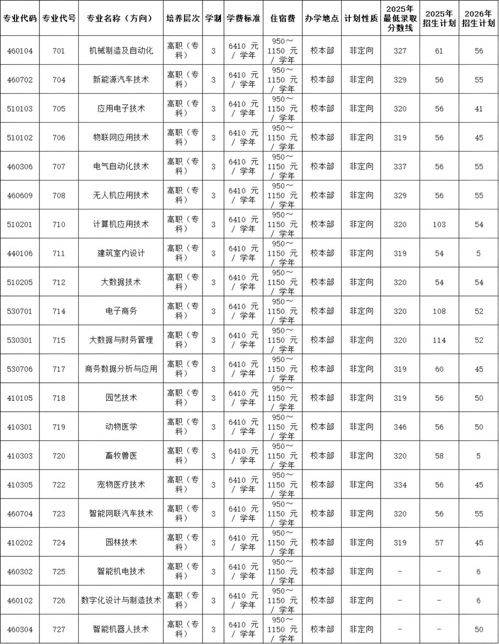 惠州工程职业学院2026年春季高考招生计划