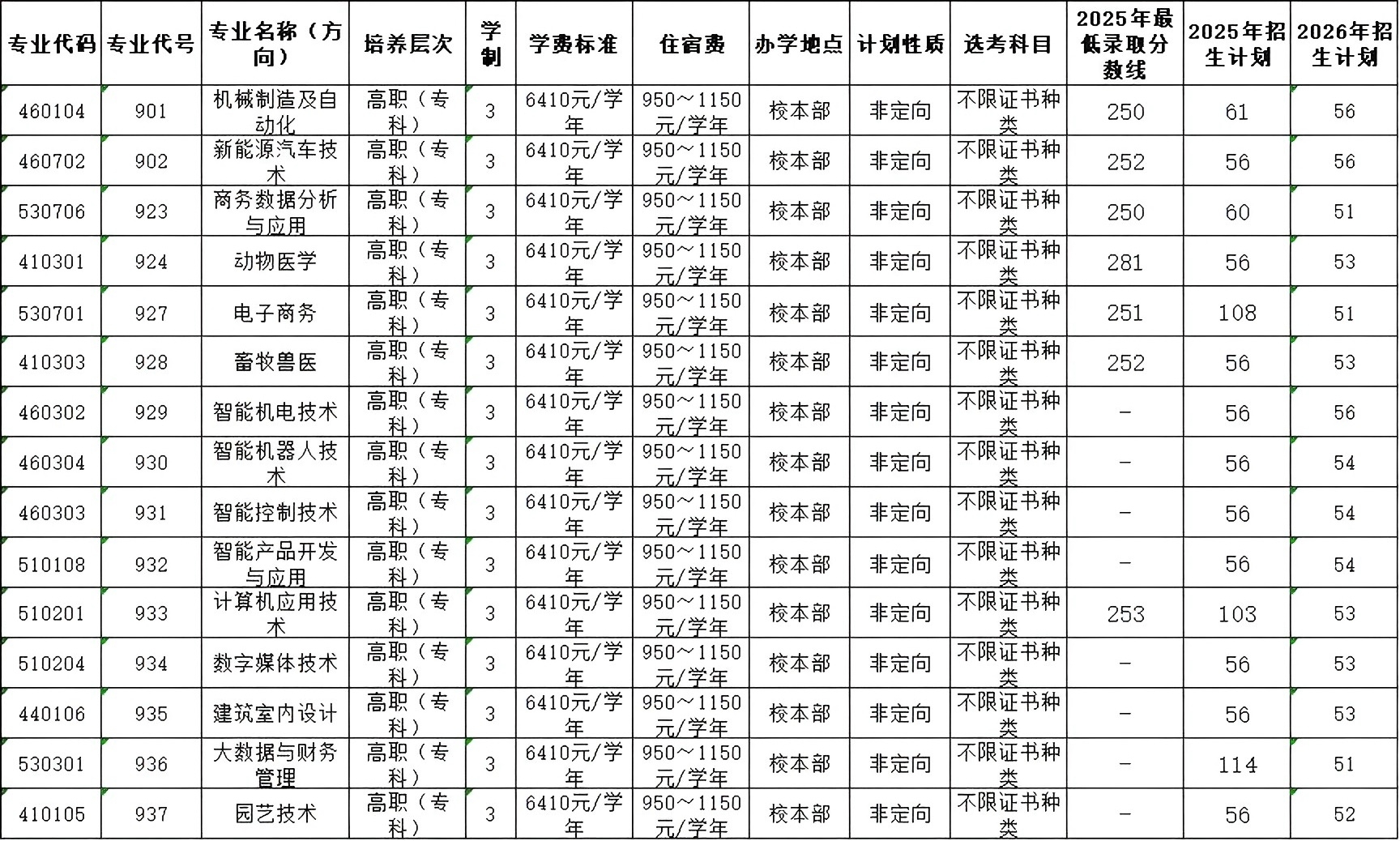 “3+证书”招生计划