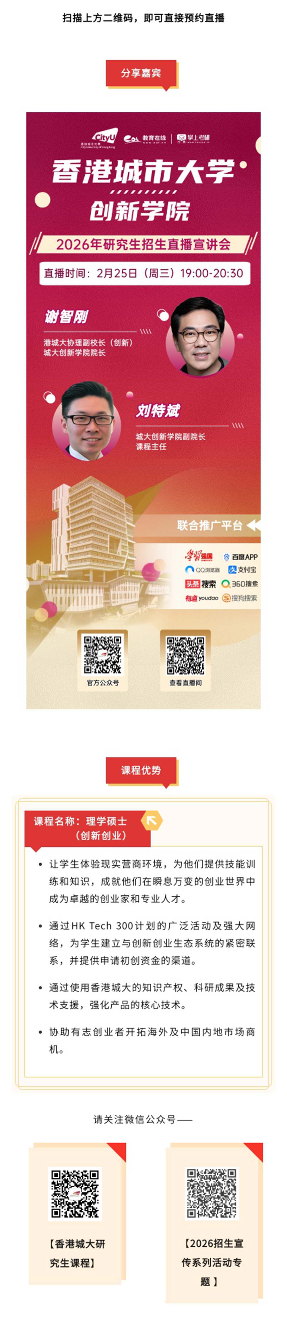 香港城市大学创新学院硕士宣讲会,共启创业构想与商业转化新征程!