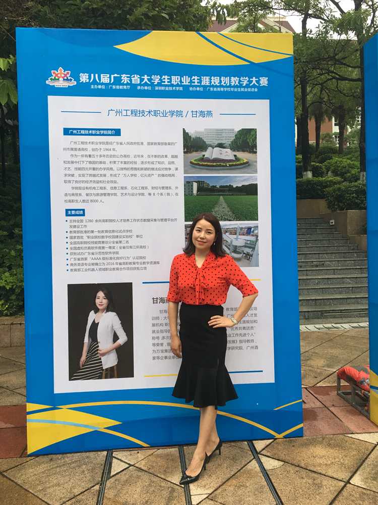 图:甘海燕老师参加广东省大学生职业生涯规划教学大赛获一等奖