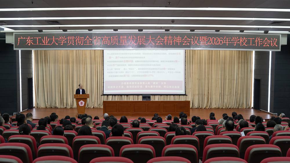 3月10日开学伊始,广东工业大学在大学城校区大讲堂中心报告厅召开了贯彻全省高质量发展大会精神会议暨2026年工作会议,会议对过往工作进行了全面总结,吹响了广工开局“十五五”、决胜“冲一流”的奋进号角。