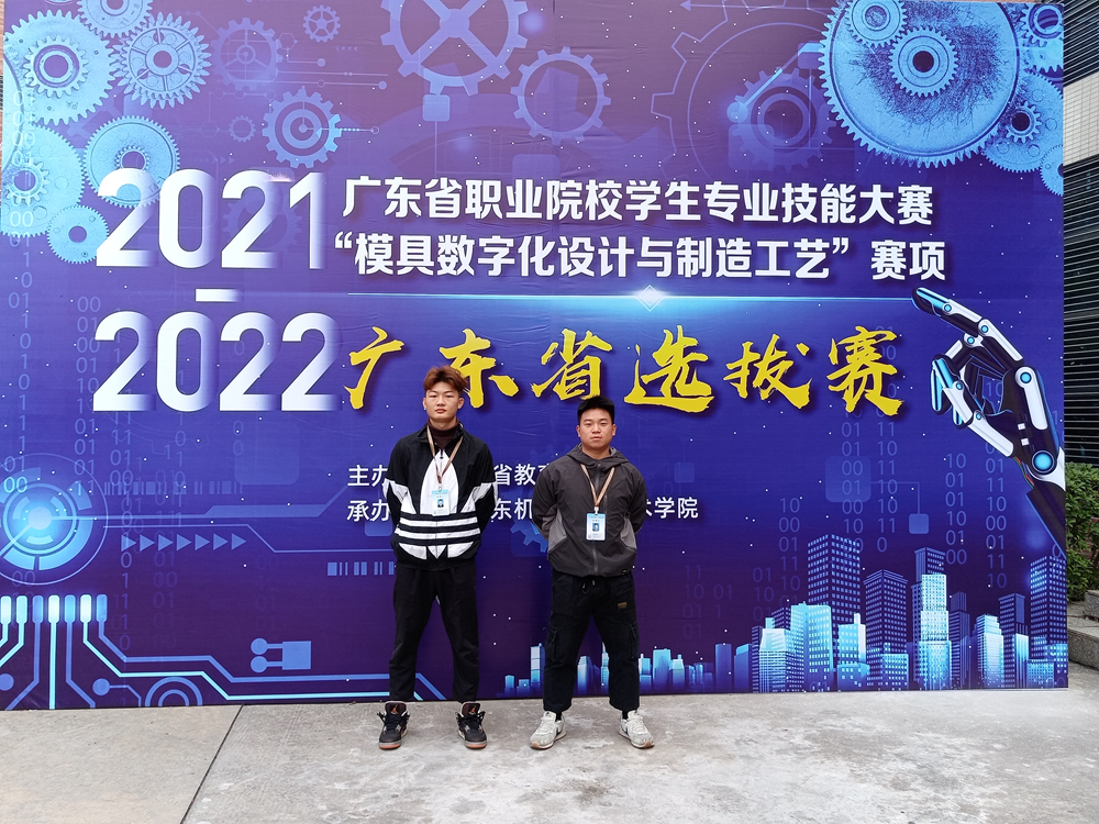 2020级模具设计与制造专业卢元忠(左一)2022年荣获广东省职业院校学生专业技能大赛三等奖