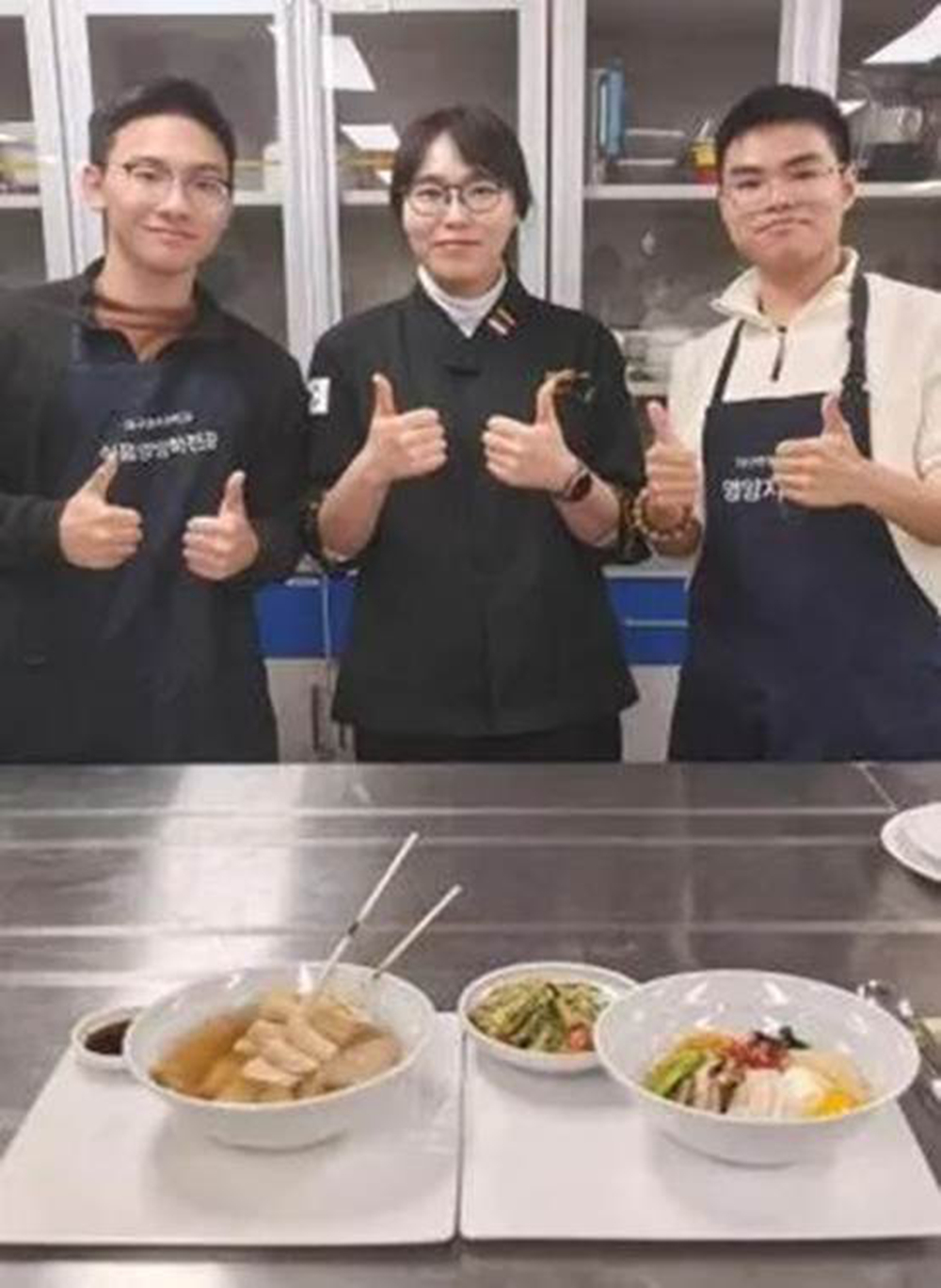 在航空服务模拟舱内,他们化身“空乘人员”系统学习客舱服务流程;餐饮实践课上,在韩国老师指导下亲手制作鱼饼汤、韩式拌饭等特色料理,从食材处理到火候把控,每个环节都精益求精。两人发现饮食文化中“药食同源”的理念,与自身药学知识形成了巧妙呼应。