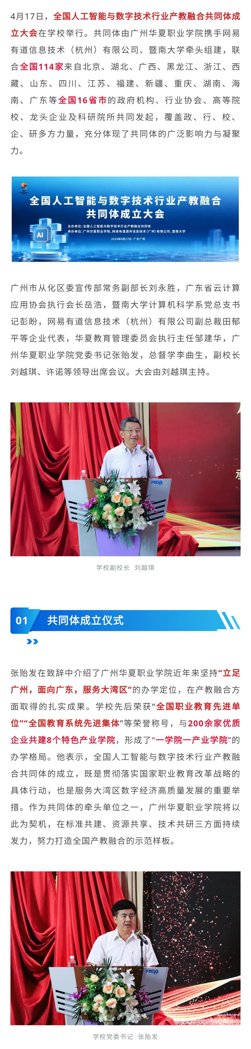 全国人工智能与数字技术行业产教融合共同体!在广州华夏职业学院成立!