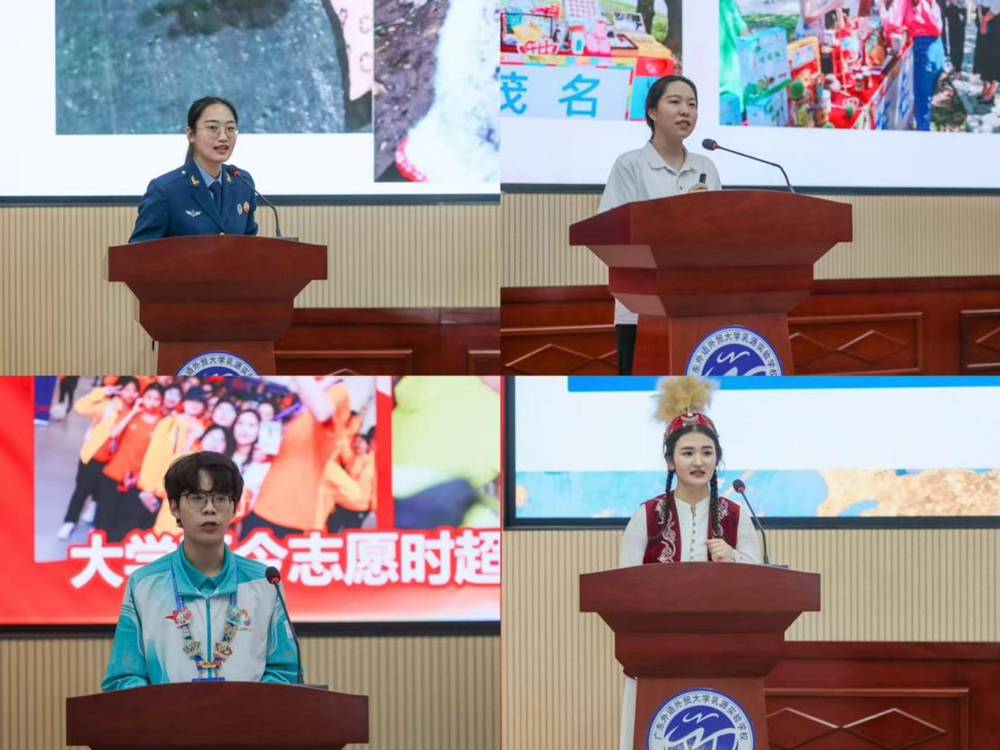 在广外乳源实验学校宣讲现场,宣讲团以“同龄人讲同龄事”为核心,带来了有热血、有温度、有力量的青春分享,更勾勒出新时代中国青年多元而坚定的成长图景。曾服役于中国人民解放军南部战区空军的研究生李冬薇,以凌晨战备铃响、60 秒奔赴战位的亲身经历,讲述了从新兵成长为守护祖国领空的空军女兵的蜕变;深耕“百千万工程”实践的研究生张钧如,讲述家乡茂名荔枝产业振兴的故事带上央视直播与新加坡、日本等国际讲台的鲜活实践,本科生曹庭春以服务20余场国际赛会的多语言志愿者经历,分享了以语言为桥搭建中外沟通纽带的青春感悟。