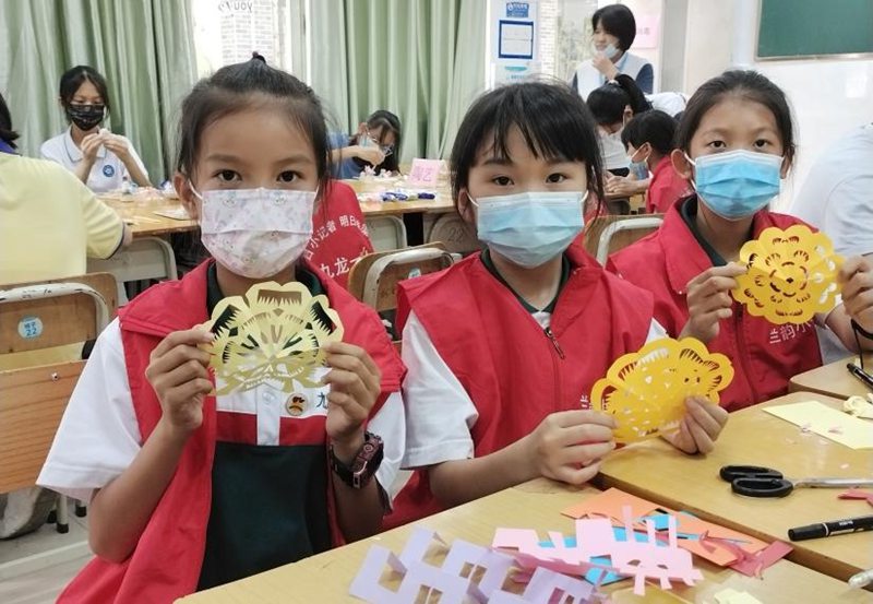 在剪纸活动专区,在司徒华欣老师的辅导下,小记者在短短的时间里,成功地剪出可圈可点的剪纸作品。在大家的热情创作下,很快一个个“囍”字出炉了,同学们的剪纸作品喜庆生动,活灵活现,创意无穷。