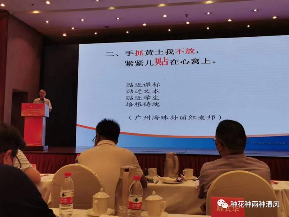 最后一天的会议,广东省教育研究院钟守权主任对本次活动进行总结并对下阶段工作进行统筹安排。本次活动影响很大,全网有85万点击量。钟副主任指出课题研究要要依据文件,加强理论研究,有问题导向,有成果意识,关注成效。倾力打造有理论、实践、教师发展、学生成长、区域学科教育教学贡献显示度的成果。他还提出了做好中期报告、设计研究进度标线、服务教学实践、打造特色特色品牌等7点具体后续建议,钟副主任的发言提气、给力、长精神,为“铸魂工程”向纵深推进起到了很好的高端引领作用。