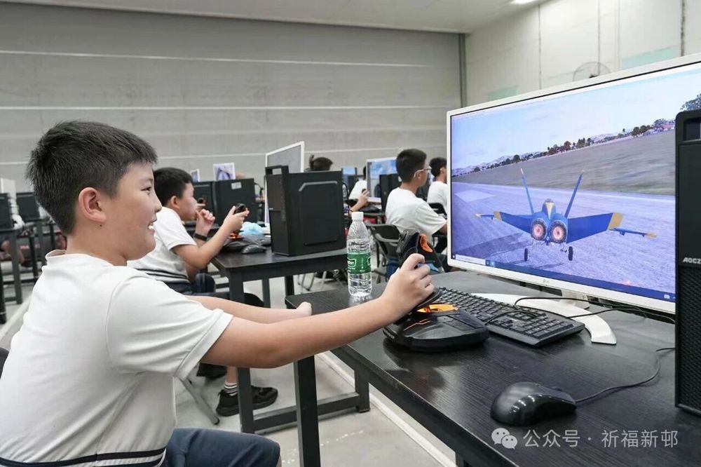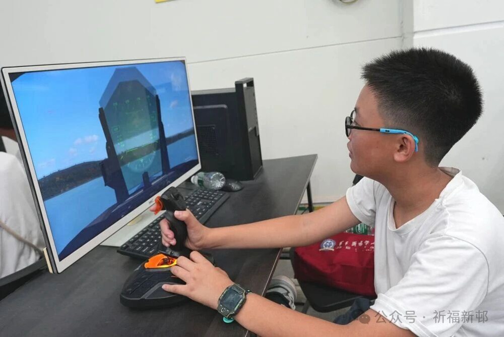 4)模拟飞行“过把瘾”:活动还设置了模拟飞行体验环节。学生在教练指导下操作飞行摇杆,认识仪表功能,初步掌握飞行操控原理,完成一次“冲上云霄”的虚拟旅程——当操纵飞行摇杆带动“飞机”爬升、转弯时,少年们眼里的光,是梦想照进现实的模样。