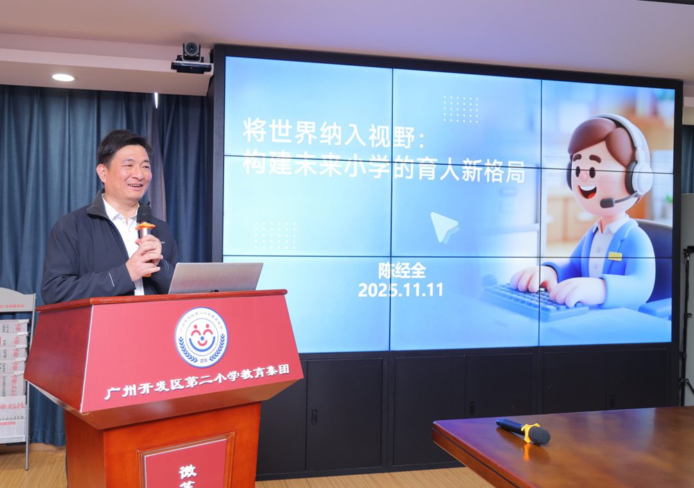 华南师范大学附属开发区实验小学党支部书记、校长陈经全则聚焦《将世界纳入视野:构建未来小学的育人新格局》,强调要以全球化视角培养学生核心素养;