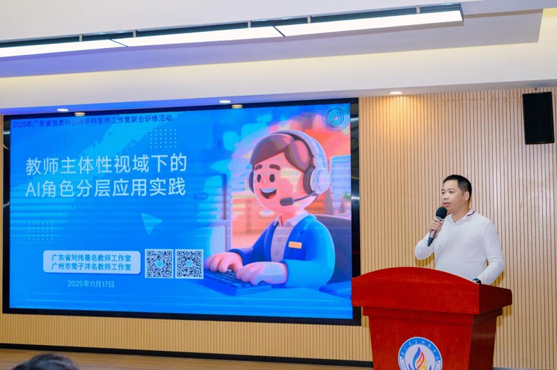 为落地国家教育数字化战略,响应《教育强国建设规划纲要》号召,2025年11月17日至18日,“技术赋能综合育人”广东省信息科技跨学科名师工作室联合研修活动在佛山禅城成功举办。此次活动由广东省中小学教师培训中心主办,17个省级名师工作室联合承办,佛山市禅城区教师发展中心、佛山大学附属学校协办。禅城区教育局副局长赵骥、佛山市教育信息网络中心主任岑健林出席并致辞。本次活动汇聚全省17个省级名师工作室、500余名教育工作者,线上吸引10777人次观摩,共探“AI+教育”融合新路径。