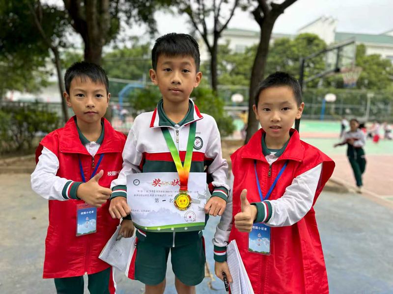 练炽明校长的身影也时常出现在赛场各处,不断为运动员加油鼓劲,尤其为坚持完成比赛的选手点赞。小记者陆嘉怡借此机会进行专访,练校长表示:“胜负固然重要,但更重要的是参与的过程和永不言弃的精神。校运会不仅是竞技舞台,更是培养集体荣誉感和坚韧品格的课堂。”这番话让在场的小记者们深受启发。