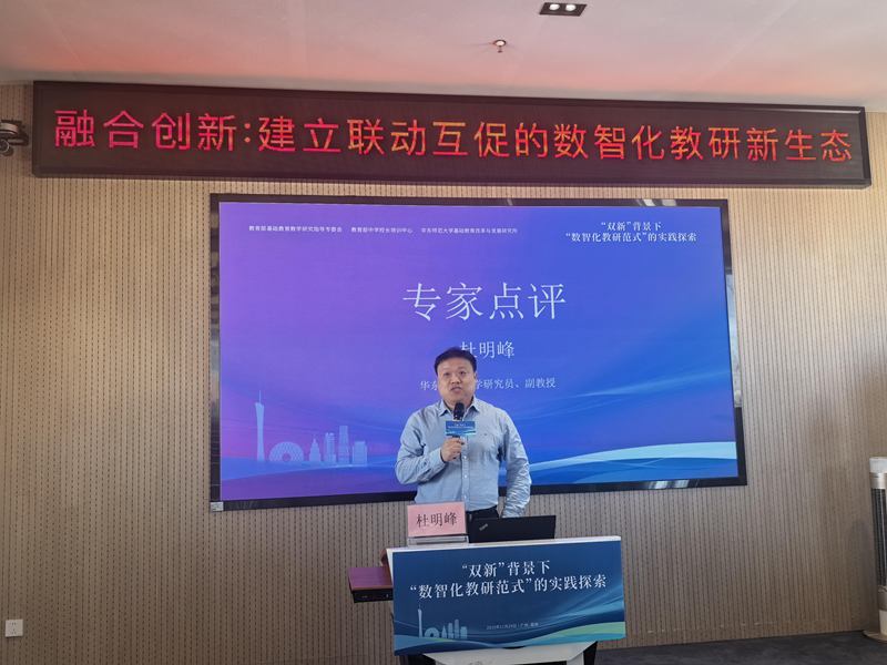 分会场二聚焦“平台赋能:创新基于国家智慧教育平台的教研模式”,由广东第二师范学院陆丰教育集团书记卢建新主持。荔湾区国家智慧教育平台应用课题组分享了平台赋能教学的实践,成效显著。湖北荆州、广东汕尾、北京门头沟、四川德阳等地代表分享了云平台教研、农村英语教学、心理学科协同、集团网链教研等创新实践。在点评环节,华东师范大学副教授杨光富对分享的案例给予了高度评价,认为案例能紧密契合数字化转型需求,既具有创新性又具备实际操作性。