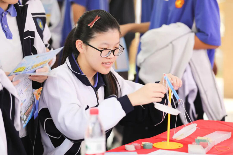 “职业尝试区”堪称人气焦点。40余位家长组成“家长导师团”,携职业专长设立体验摊位,构建起鲜活的“职场微缩景观”。导师阵容多元:科技公司工程师拆解技术原理,资深管理者解析运营智慧,厨师演示烹饪技艺,设计师指导手工创作。各摊位前学子踊跃参与:工程师摊位上,大家紧盯操作、频频提问;管理者摊位中,职场案例引发热烈讨论;烹饪与设计摊位前,动手实践的热情高涨,家长导师的专业讲解让学子直观触摸职场真相。