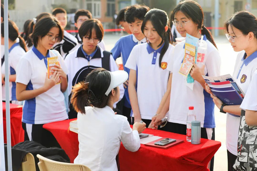 “高校领航站”则为升学规划精准赋能。学校邀请17所省内高校招生老师驻场,在学术报告厅通过展板、宣讲等形式,详解招生政策、特色专业与就业前景。学子与家长围站咨询,“志愿填报技巧”“专业适配性”等问题得到细致解答,为未来升学之路扫清迷雾。