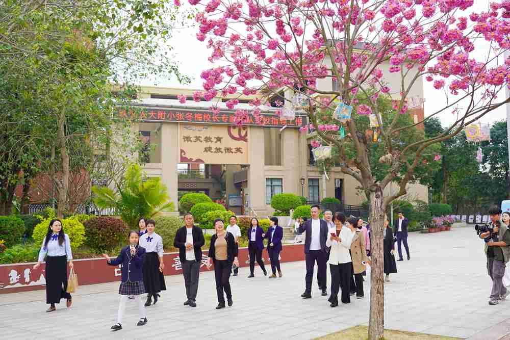 寒冬暖阳映繁花,教育匠心聚芳华。在广州开发区第二小学党总支的指引和引领下,12月19日至20日,广州开发区第二小学北校区迎来了一场教育的盛事——中国教育学会“卓越计划”广东省第二期中小学书记校长培养项目(小学)导师入校指导活动顺利开展。由中国人民大学附属小学党委副书记、校长张冬梅领衔的专家团队、广东省第二期中小学书记校长培养项目(小学)第二组培养学员、广州市黄埔区教育局领导、区内兄弟学校领导及广州开发区第二小学全体行政、教师代表齐聚一堂,以“微笑教育”为纽带,通过实地观摩、深度研讨、精准反馈等多元形式,共探学校发展新路径,凝聚教育提质新力量。