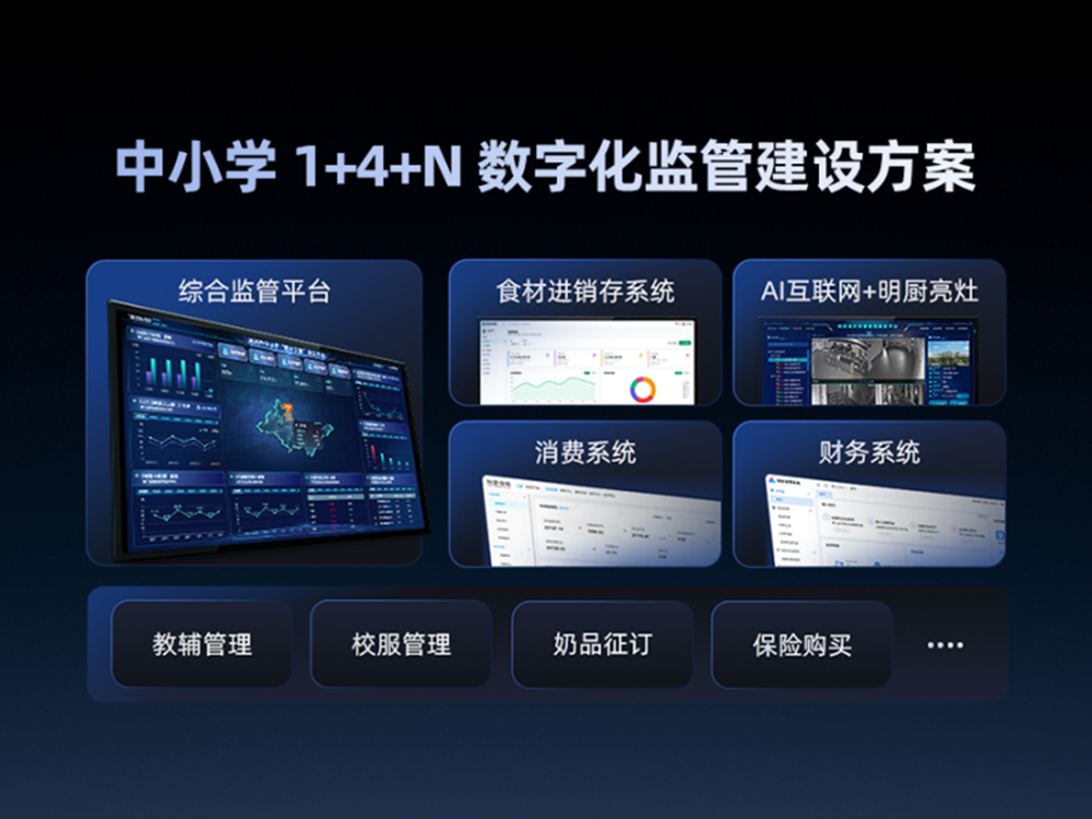 4月16日召开的利楚教科智慧校园解决方案发布会上介绍,1+4+N数字化监管解决方案包括一个局端监管平台和四大业务闭环。1个局端监管平台作为区域校园治理的数字中枢,打通多端数据,通过多级驾驶舱支撑省、市、县、校四级管理决策。食材监管、餐费监管、财务核算、监管处置等4大闭环,环环相扣,实现从采购源头到资金去向、从财务规范到问题处置的全流程闭环管理。