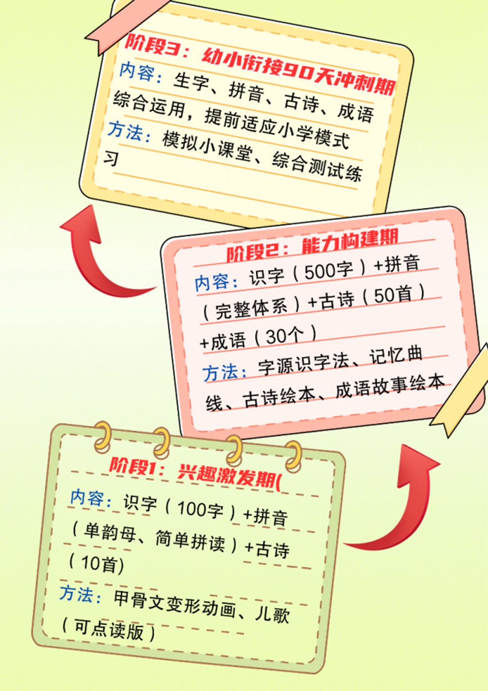 坚持1年,识字量可达1500-2500个,完全能完成小学一年级30分钟的课外阅读任务,提前实现阅读自由。