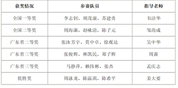 今年,来自全国33个省/市/区(包括香港、澳门和台湾)及美国、英国、马来西亚等全球1470所院校/校区、45680支队伍(本科41826队、专科3854队)共计13万多名选手报名参赛。在专科组比赛中,该校与一众国家示范性高职院校和“双高计划”院校展开角逐,并获得全国一等奖,获奖率仅为1.19%,广东省仅9支队伍获得全国一等奖。