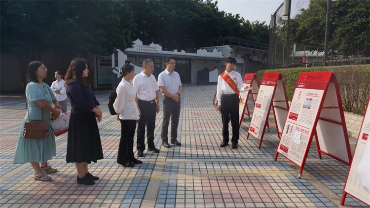 专家组参观了粤菜师傅大师工作室,聆听了红色讲解员讲解广州起义部分英烈事迹,观看了学生展示传统武术等活动,参观了“红色文化连廊”、流动读书角、师生二十大主题作品展等红色文化地标,听取了茶艺专业教师分享红色资源融入专业教学的特色做法,切实感受到浓厚的红色校园文化氛围。