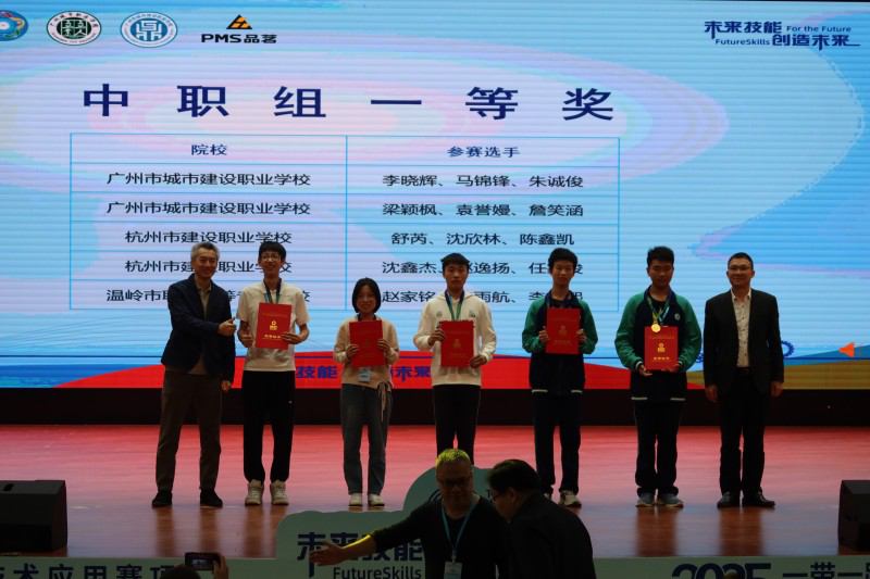 为表彰广州市城市建设职业学校、广州城市职业学院与品茗科技股份有限公司在承办本次大赛中的卓越贡献,广州市职业教育与终身教育学会杨志勇会长为三家校企联合承办单位颁发了“突出贡献奖”,此举也充分彰显了广州在整合政、校、企资源,共同推动职业教育高质量发展的先进模式与区域优势。