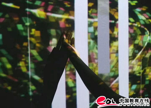 我们检票进去展览后,映入眼帘的便是万千星辰,世间我难以找到任何华丽的辞藻来形容这份震撼,就如那句话所说的:“当你真正爱一样东西的时候,你会发现语言是那么脆弱无力,文字与感觉永远有隔阂。”在一瞬间,我仿佛是银河里的一颗微乎其微的星,在宇宙的恒久变幻中沉迷,陶醉。我又仿佛是光影的主宰者,星河的旋转,星光的明暗,都在我手下小小的一方操纵盘里。荣幸之至,我看到的是超脱我们这个星球的存在——用一生发光的星星汇聚成一条美丽的星河,在宇宙的幕布上表演着光与影的梦境。我常常想:我们人类探索神秘莫测的星际,我们固然是渺小的,不管怎样,在眼前星辰的破碎与重构中,我得承认这一点。但我们人类也是伟大的,因为我们永远在打破桎梏,回击“不可能”的嘲笑,我们永远充满好奇心,充满探险精神。作为后辈的我,才有幸看到这样一场艺术与新媒体融合的宇宙演出。多日以来的心中忧愁也烟消云散,只因在这浪漫的星空下,我只能想到新生命,想到诗,想到童年,夏夜,凉席,蒲扇,想到所有美好的字眼,这场开幕式也足够令人感动。时间紧迫,我等不得不移步至下个展厅。