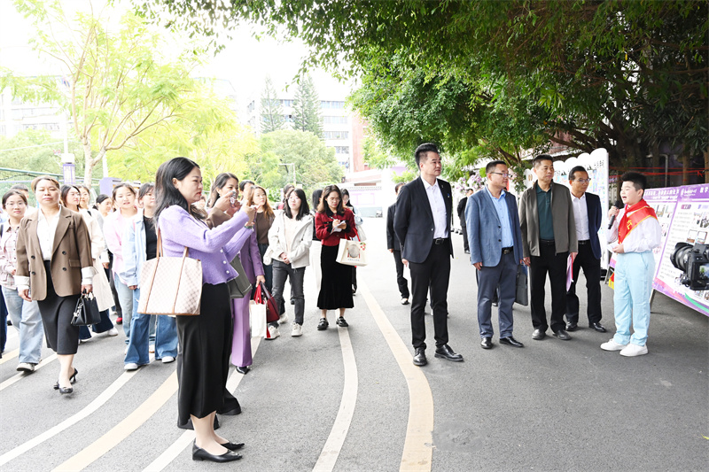 活动伊始,与会人员在学生讲解员的引领下,参观了该校和雅“阅动课堂”教学模式实践成果展核心展区。展区分为四大板块,分别是和雅“阅动课堂”教学模式折叠屏风展区、师生艺术作品展区、多元改革实践成果展区与整本书阅读成果展区。各板块内容层层递进,全方位呈现该校“和雅教育”教学改革的发展足迹。