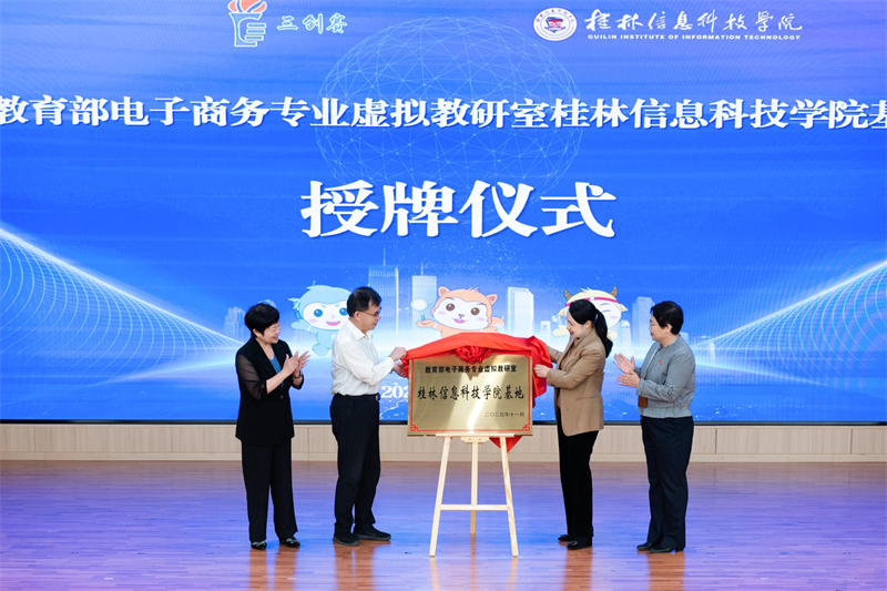2025年11月13日下午,教育部电子商务专业虚拟教研室桂林信息科技学院基地授牌仪式在桂林信息科技学院F107报告厅成功举行。教育部电子商务专业虚拟教研室主任、全国大学生电子商务“三创赛”竞赛组织委员会主席李琪教授,教育部电子商务专业虚拟教研室常务副主任、全国大学生电子商务“三创赛”竞赛组织委员会副主席彭丽芳教授亲临授牌。副校长罗捷、副校长陈玲萍、商学院领导班子及师生代表参加活动。