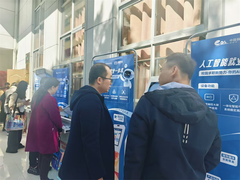 会后,与会代表参观了中国教育在线AI就业一体化展区,亲身体验了智慧就业一体机、简历打印一体机等智能设备的功能。这些设备依托大数据与人工智能技术,能够提供智能测评、简历优化、模拟面试等服务,实现了学生端、教师端、评审端的高效协同。代表们对智能化就业服务平台表现出浓厚兴趣,并就实际应用中的具体问题进行了深入交流。