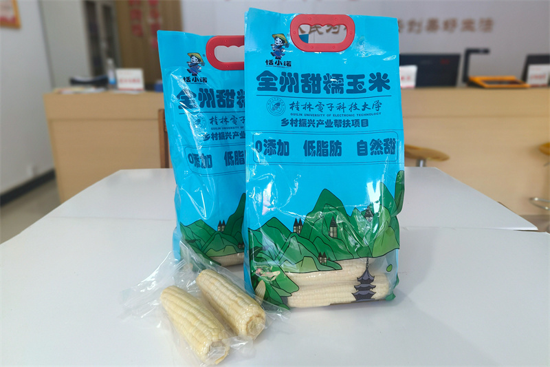该项目是桂电帮扶桂林市全州县上刘村重点打造的村集体经济产业,依托学校电子信息学科优势,将人工智能技术深度融入玉米选种、保墒、种植、管理、采收、加工、存储、销售全产业链,推动实现“全链智变”,打造了“恬小诺”甜糯玉米品牌,形成集种植、生产、加工、销售为一体的富民产业。目前,该村年产优质玉米70余万斤,产值500余万元,带动上刘村100余户农户参与,户均增收1.2万元/年,村集体经济收入由7万元增长至100余万元。桂电通过实施“AI赋能、智慧兴农”策略,有效推动当地“产品升级”与“价值提升”同频共振,探索出一条精准帮扶新路径,为乡村产业振兴提供了可复制、可推广的“桂电样板”。