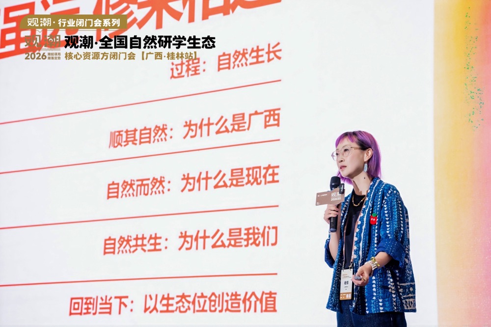 观潮会集主理人鲁锡章表示:之所以将本次闭门会落地桂林,并不仅仅因为“桂林山水甲天下”,更因为桂林及广西在自然教育、在地文旅、艺术场域、疗愈体验和多业态融合等方向上,具备极强的现实承载力与创新延展空间。会议指出,广西当下值得关注的,不只是风景本身,而是其正在进入资源、场景、内容、关系与平台能力重新组织的新阶段;桂林也因此成为重新理解自然研学、重做目的地内容的重要场域。