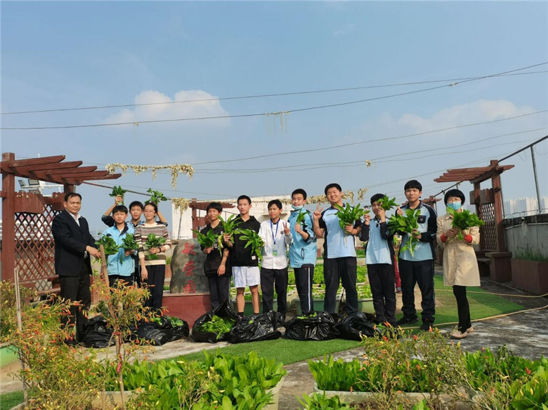 2021年12月24日,南宁市第二十四中学迎来了它第五十个生日,在这全校欢庆的日子里,在这盛大而热闹的校庆活动中,南宁市第二十四中学借此契机进行了劳动实践活动。由罗仁举老师、吴清霞老师及班主任谭文姿等老师带领学生们至学校生态园——敏育园开展采摘蔬菜并售卖的活动。