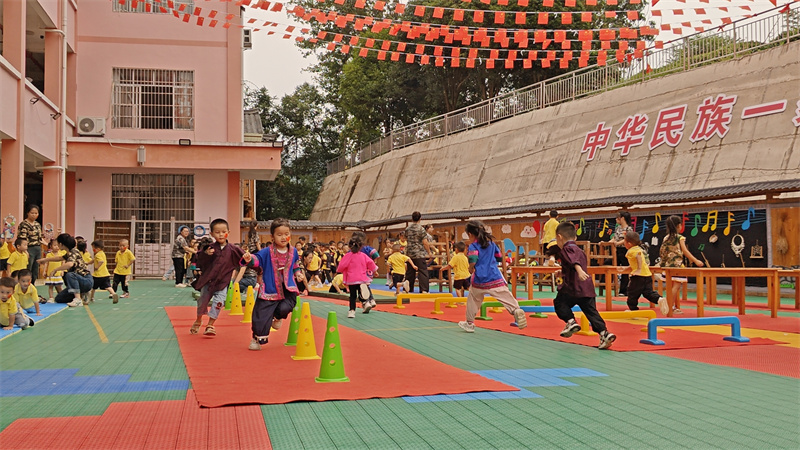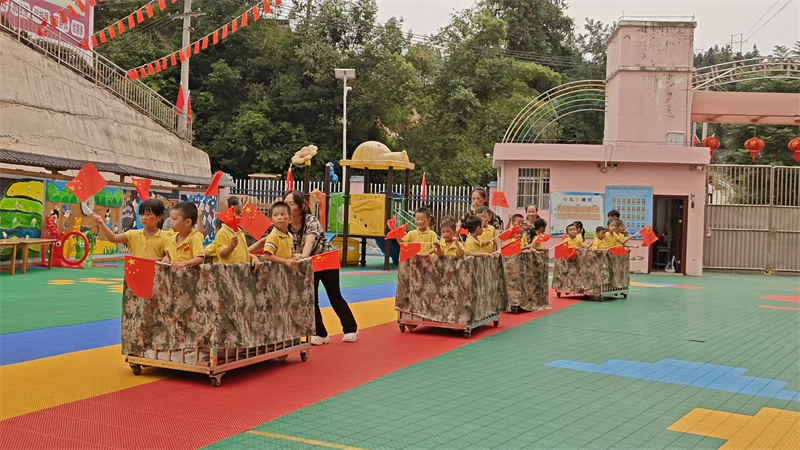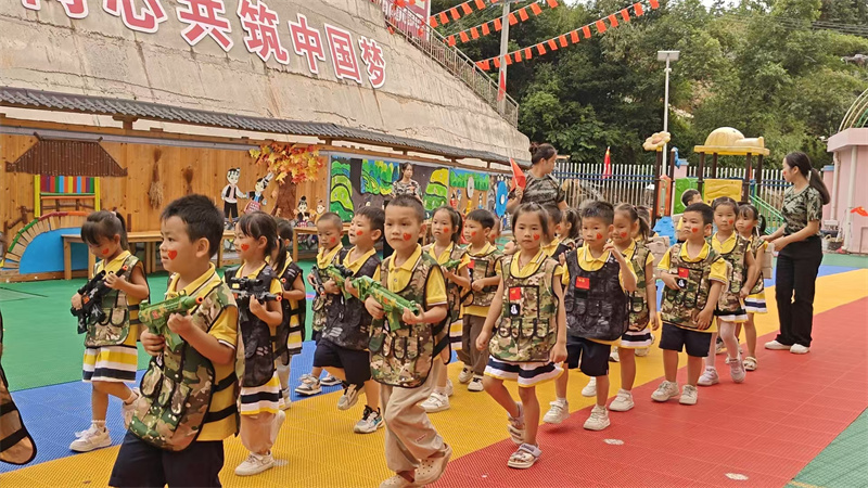 9月30日,广西三江侗族自治县同乐苗族乡中心幼儿园以“童心向国,欢庆华诞”为主题开展国庆活动。活动中,各族幼儿身着民族服饰及迷彩服,通过“小小阅兵”“爱国大练兵”及手工制作等形式,沉浸式体会爱国意义。幼儿们全身心投入,在欢乐体验里将爱国种子悄然播撒心间,为中华优秀爱国精神的代代传承注入童真力量。