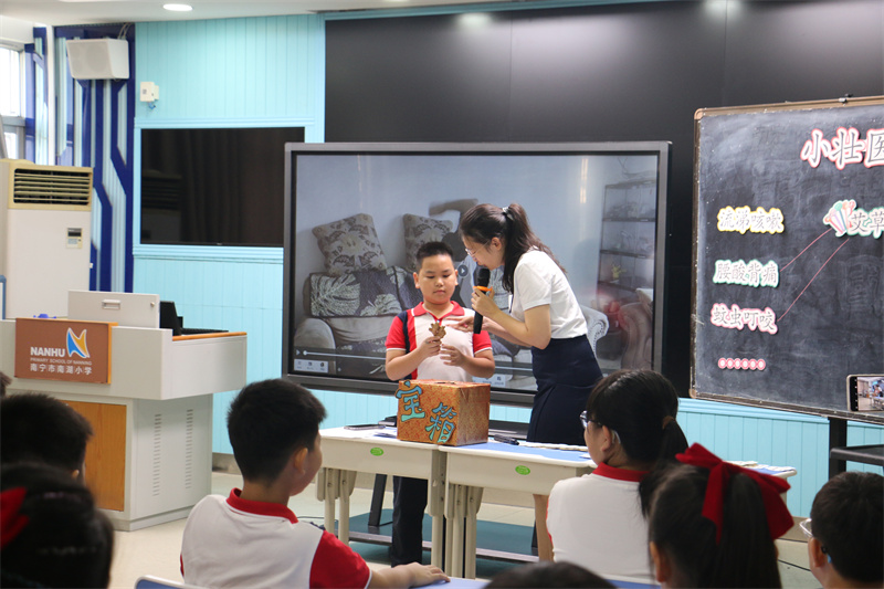 随后,南宁市南湖小学桃源校区周颖老师执教四年级项目式学习入项课《小壮医传承大智慧》入项课教学展示。课堂上,师生围绕“壮医文化与健康生活”展开互动探究,学生在真实任务中展现出浓厚的探究热情,凸显出项目式学习与地方文化深度融合的独特价值。