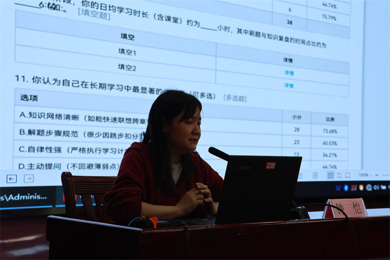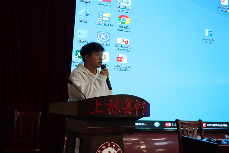 上林中学教师苏亦辰在分享时谈到,此次培训使其深刻认识到教研活动必须立足于真实的学情与教学问题。他提出将通过“精准定位教研主题”“创新教研活动形式”与“实现校内多维联动”三项举措,提升教研活动的实效性。苏老师表示,蓝玉老师的讲座让他意识到,AI可以帮助教师更精准地识别学生需求,从而设计更有针对性的教学活动。