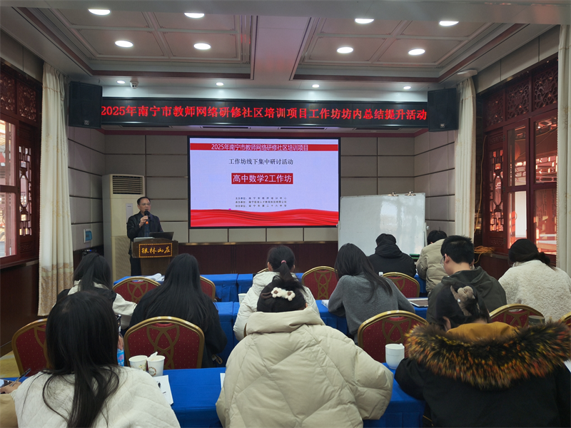冬日的邕城暖意融融,教研的热情点燃思绪。在AI技术深度融入教育的时代浪潮下,高中数学教学如何破局创新?2026年1月11日,南宁市高中数学2工作坊第三次线下研修活动在银林山庄拉开帷幕,一群深耕数学教学的教育者,就此开启了一场与AI同行、与课堂对话的研修之旅。