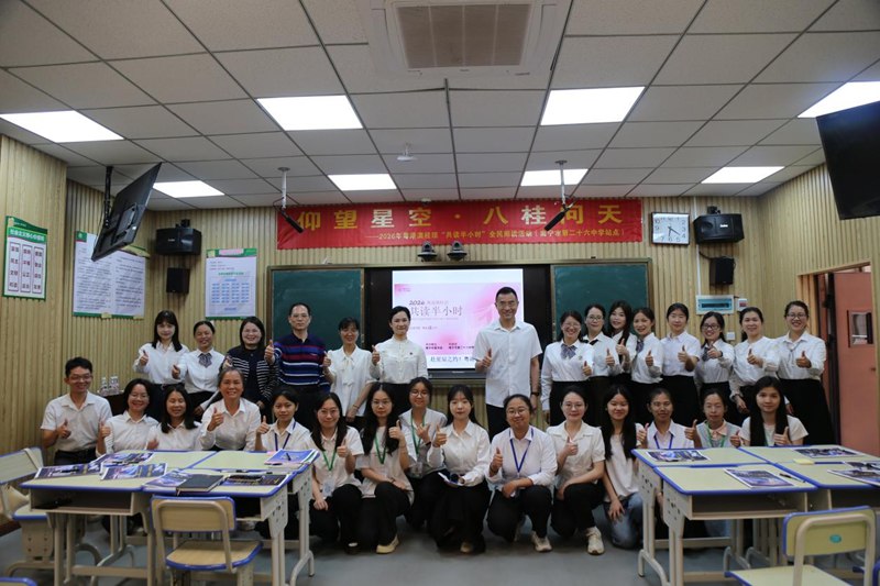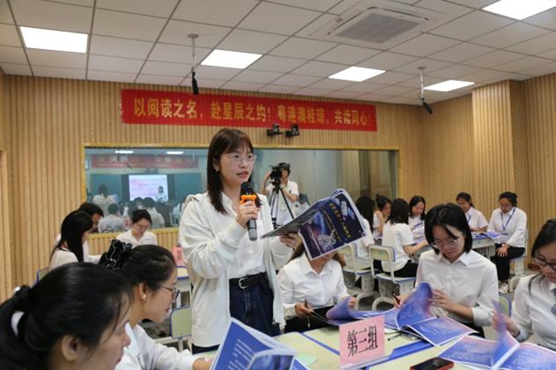 在粤港澳桂琼“共读半小时”的活动中,与会代表在《星辰大海》钢琴版背景音乐中,大家静心阅读、分享感悟、集体朗诵原创诗歌《八桂问天》,并在“致敬航天人”便利贴墙上写下心声。活动最后,全体合影喊出“以阅读之名,赴星辰之约”的口号,展现了浓厚的书香氛围与家国情怀。