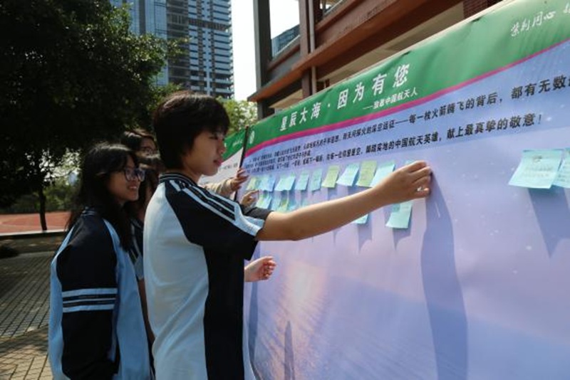 同学们书写对航天人的敬意