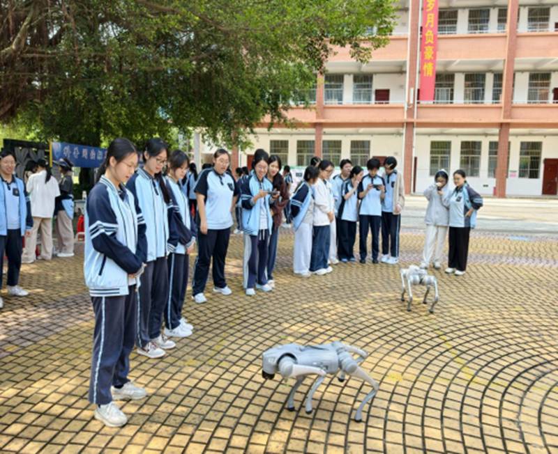 4月24日“中国航天日”当天,南宁市科技馆航天主题科普大篷车开进校园。学生们在科技辅导员带领下,参观航天器模型、操作机器狗、体验VR设备,沉浸式感受“玉兔探月”“黑洞漫游”等宇宙探索场景。同时,数学主题流动科普设施也激发了同学们的思维挑战热情。