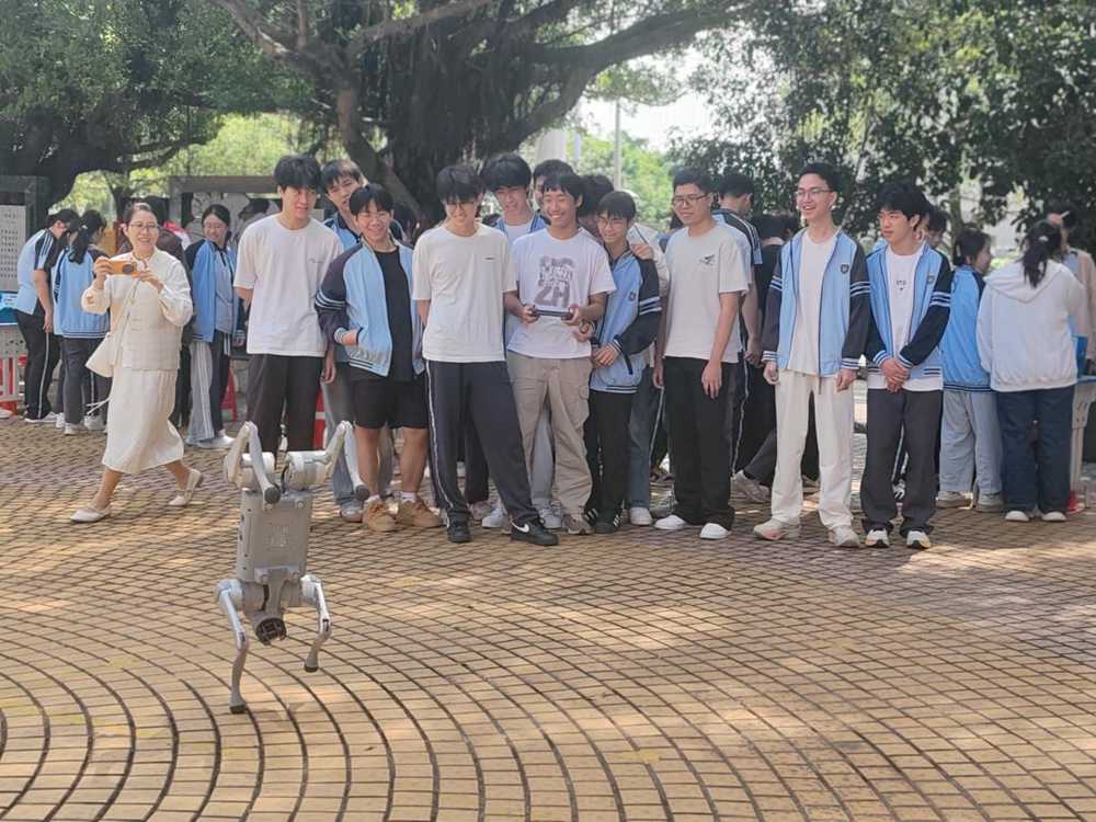 一旁的机器狗展示体验区传来阵阵欢呼。在科技辅导员的指导下,同学们尝试操作机器狗,完成跑跳、避障、握手等一系列动作。机械结构的精密与智能控制的灵敏,让同学们在欢笑中深刻感受了人工智能技术的飞速发展。