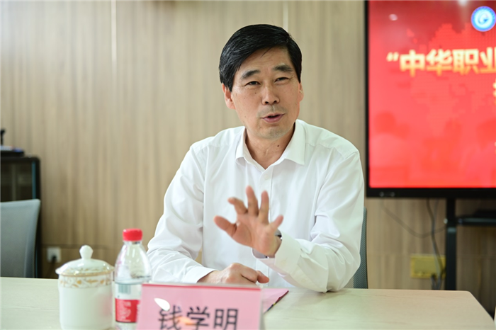 学校党委书记梁辉致辞,他从学校办学目标、师资队伍建设、产教融合校企合作等多方面介绍了学校办学情况,并对中华职教社对学校的指导和帮助表示感谢。下一步,学校将贯彻落实好习近平总书记对职业教育的重要指示精神,以“社员之家”为阵地,借助平台将职教研究和实践相结合,不断深化教育教学改革和产教融合、校企合作的广度和深度,凝聚智慧,服务好地方产业经济的发展。