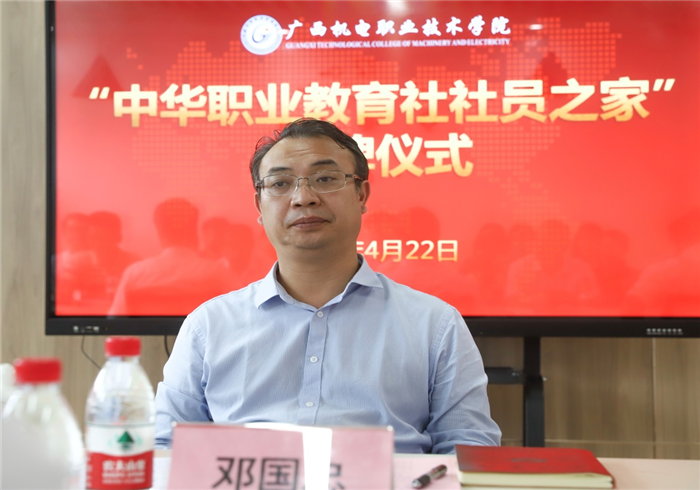 自治区党委统战部部务会成员、广西中华职教社专职副主任邓国忠对广西机电职业技术学院近年来的跨越式发展以及对区域经济发展做出的贡献给予充分肯定。他指出,中华职教社作为统战工作的重要载体,成立“社员之家”拓展了职业教育与职业院校之间的互动交流,真正让“社员之家”成为每位社员交流学习的园地、增进联谊的港湾、校企合作的平台。希望学院按中华职教社的章程和职教社有关指示精神,主动融入,加强互动,发挥好办学优势。