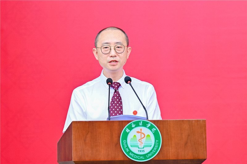 张志勇深情回顾了桂医发展88年的薪火历程和始终如一的办学初心。他表示,在一代又一代桂医人的努力奋斗下,学校如今已发展成为拥有3个校区,20个二级学院(系、部),3所直属附属医院,教职工6000多人,教授、博士700多人,全日制在校生1万4千余人,集教学、科研、医疗、保健为一体的高等医科院校。去年,学校正式获得博士学位授予权,历史性地建成了“本、硕、博”完整高等医学人才培养体系,今年首次迎来20名博士新生,这是桂医历史发展上值得纪念的又一重要时刻,必将载入史册!