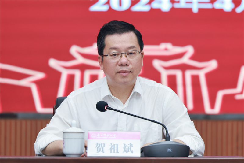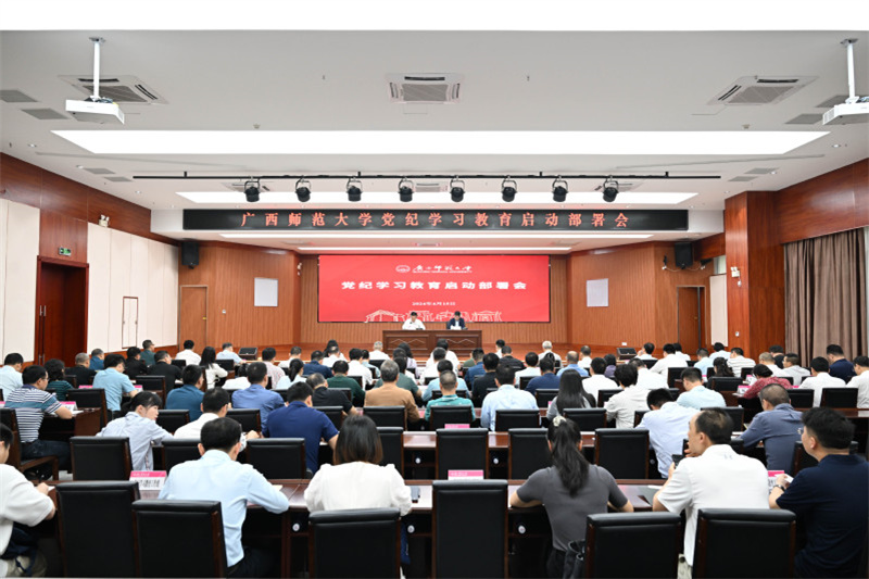 4月15日,广西师范大学党纪学习教育启动部署会在育才校区举行。会议深入学习贯彻习近平总书记关于党纪学习教育的重要讲话和重要指示精神,坚决贯彻党中央决策部署和自治区党委部署要求,全面落实中央和自治区党委党的建设工作领导小组会议精神,对全校开展党纪学习教育进行启动部署。校党委书记贺祖斌作动员讲话,校党委副书记、校长孙杰远主持。