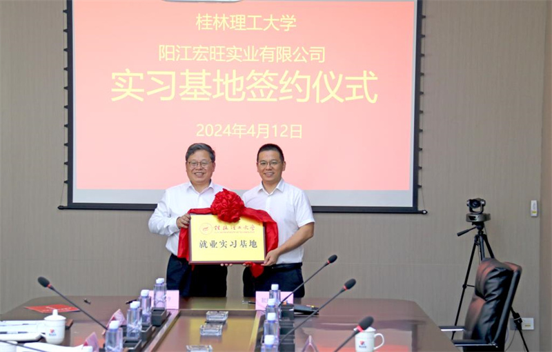 在阳江宏旺实业有限公司举行“桂林理工大学就业实习基地”揭牌仪式