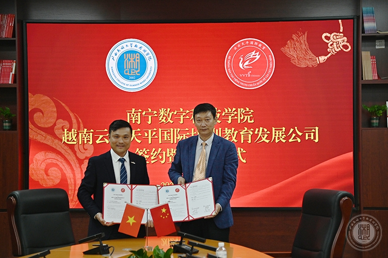 刘开南教授表示,南宁数字科技学院始终坚持“为了让学生更好地走向社会”的办学理念,不断改革升级学校的教学方式,持续为学生打造实训平台和交流平台。目前,学校拥有中国教育部中国-东盟数字人文交流研究院,还与吉利汽车集团、吉利曹操出行、吉利星睿科技集团、极氪汽车等企业进行合作,并联合学校相应专业开设了4个卓越班、创新班。希望双方在签署协议后能各自发挥更多优势,践行“千人千面”的育人理念,建立长效、灵活、学科交叉的育人机制培养人才,挖掘和激发学生的潜力,使更多的越南留学生得到优质的教育,成为中越文化使者和有数字特质的高水平应用人才,为中越及东盟国家经济发展提供有力支持。同时,双方还可以在人工智能语料库、技术大模型等科技技术方面进行深入合作,为未来两国在专业技术交流中提供更多的帮助。