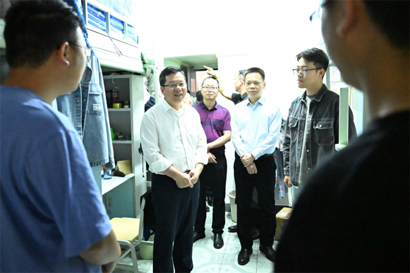 为切实做好校园消防安全保障工作,以高水平校园安全保障学校高质量发展,全力筑牢校园安全“防火墙”,5月6日,校党委书记贺祖斌,校党委常委、副校长黄文韬、林国庆深入学校王城校区开展安全检查,重点对广西师范大学文物建筑及学生宿舍的用火、用电安全,安全责任落实情况、防火防灾措施落实情况、消防设施器材配置等方面开展风险隐患排查和治理,部署校园消防安全工作。