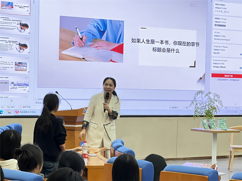 “如果人生是一本书,你现在的章节标题会是什么?”徐一洛以这个富有哲思的问题开启讲座,引导现场师生进行思考。她以个人成长与文学创作经历为例,指出文学与职业具有共通性:文学创作过程与职业发展轨迹,都需要不断修订完善以呈现最佳版本;所有成功的职场故事都蕴含着开端、发展、成长与结局的文学叙事密码。