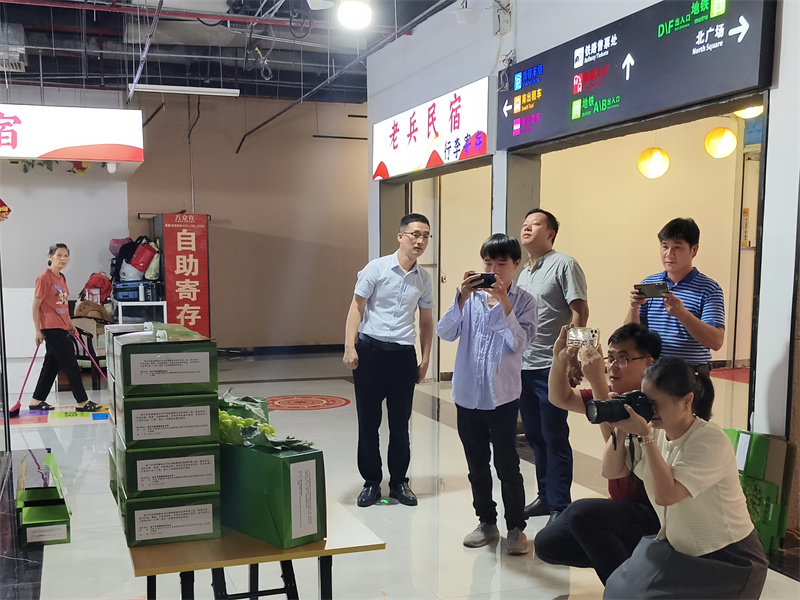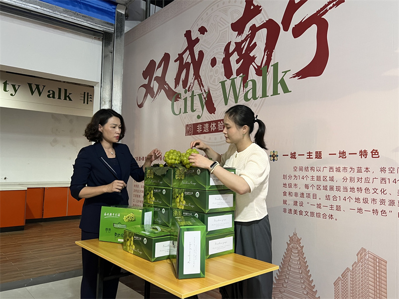 “葡萄要这样摆,拍着好看。”8月13日,南宁东站南广场的“双成・南宁City Walk非遗体验馆”里,“榴莲大哥”的门店前,广西国际商务职业技术学院文化与旅游学院的党员先锋队队员正在有序地码放着晶莹饱满的阳光玫瑰,并调试灯光拍摄,为“红旅助农”活动做着前期准备工作。