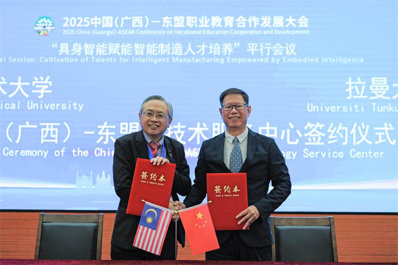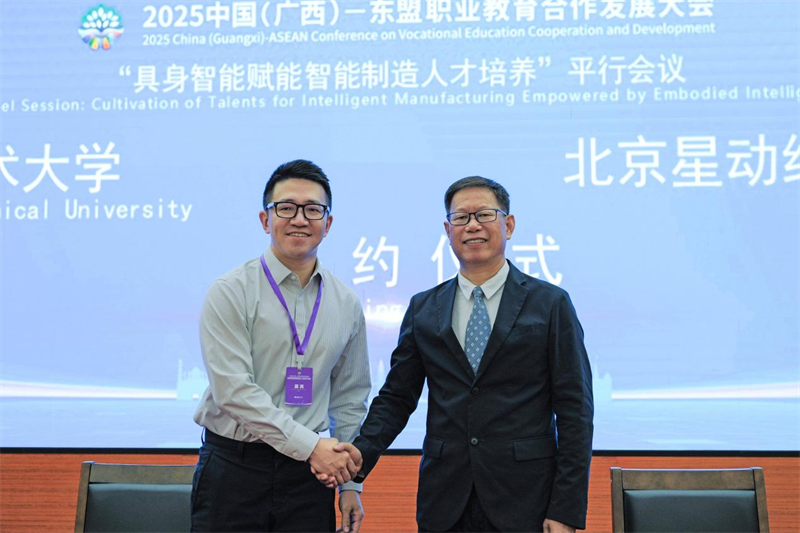 傅源方表示,广西已构建起民族地区规模最大的现代职业教育体系,建成21所高水平高职学校、17个中国—东盟现代工匠学院,累计培养东盟学历生549人、培训3万余人次。未来,广西将重点推进三方面工作:一是建设具身智能产教融合创新中心,推动跨国教学资源共享;二是实施“中国—东盟人工智能人才培养计划”,每年培养200名以上掌握具身智能技术的东盟人才;三是与东盟国家共同制定技术标准、举办技能大赛,深化智能制造领域跨境合作,助力中国—东盟命运共同体建设。